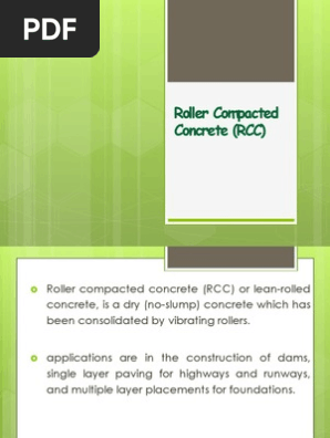 The mixture of roller compacted concrete need to be dry enough to avoid sinking of the vibratory roller equipment but wet enough to allow sufficient distribution of.